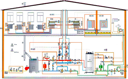 Монтируемые сети отопления имеют несколько раздельных контуров, а также гидроразделитель.